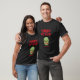 My 11 yo wore adult XL (5’7” 165#). The 8yo is small framed. She wore adult small and tied it in the back. Grandma wore adult large with long sleeve shirt underneath. Tall girl adult medium. Dark haired male adult large. Good quality dark Heather gray, Gildan brand shirt. -it was next up from basic choice and cost about $20 per shirt. Not too thick or thin. Washed and dried well, no major shrinkage. Not see-through. Can wear a bra under it fine. Screen print is just as shown and well done, front and back.