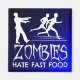 Fast food just ain't gonna cut it when you're on the hunt for human flesh. If there's one thing the walking dead can't abide, it's joggers! Spread a little Halloween humor or celebrate your zombie love any time of the year. Zombies Hate Fast Food. This zombie design is presented over a bright blue background. It can easily be deleted and replaced with a rainbow of dark color choices.