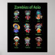 Kawaii-style zombie representing different countries in Asia: Cambodia, China, India, Japan, Korea, Philippines, Taiwan, and Vietnam.