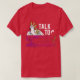 My 11 yo wore adult XL (5’7” 165#). The 8yo is small framed. She wore adult small and tied it in the back. Grandma wore adult large with long sleeve shirt underneath. Tall girl adult medium. Dark haired male adult large. Good quality dark Heather gray, Gildan brand shirt. -it was next up from basic choice and cost about $20 per shirt. Not too thick or thin. Washed and dried well, no major shrinkage. Not see-through. Can wear a bra under it fine. Screen print is just as shown and well done, front and back.